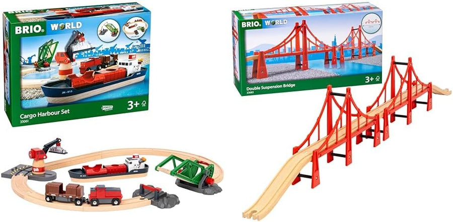 BRIO World 33061 Container Hafen Set - Mit Hafenbrücke & World 33683 Hängebrücke - Eisenbahnzubehör