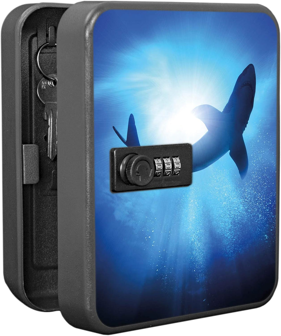 banjado® Burg-Wächter® abschliessbarer Schlüsselkasten mit Motiv Hai für 20 Schlüssel - Schlüsselkas
