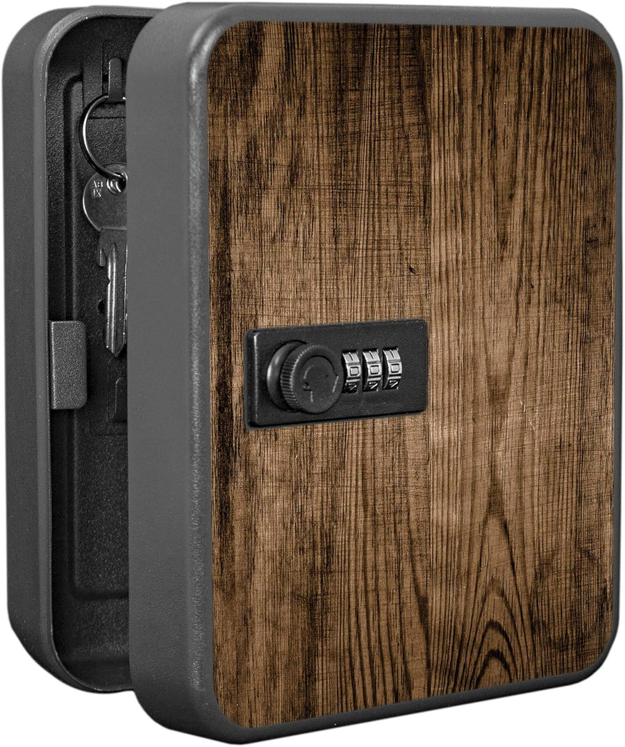 banjado® Burg-Wächter® abschliessbarer Schlüsselkasten mit Motiv Maserung Dunkel für 20 Schlüssel -