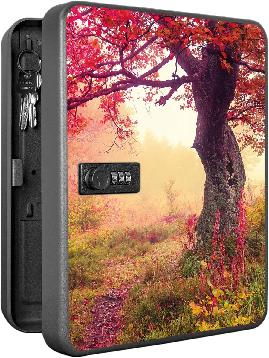 banjado® Burg-Wächter® abschliessbarer Schlüsselkasten mit Motiv Herbstwald für 20 Schlüssel - Schlü