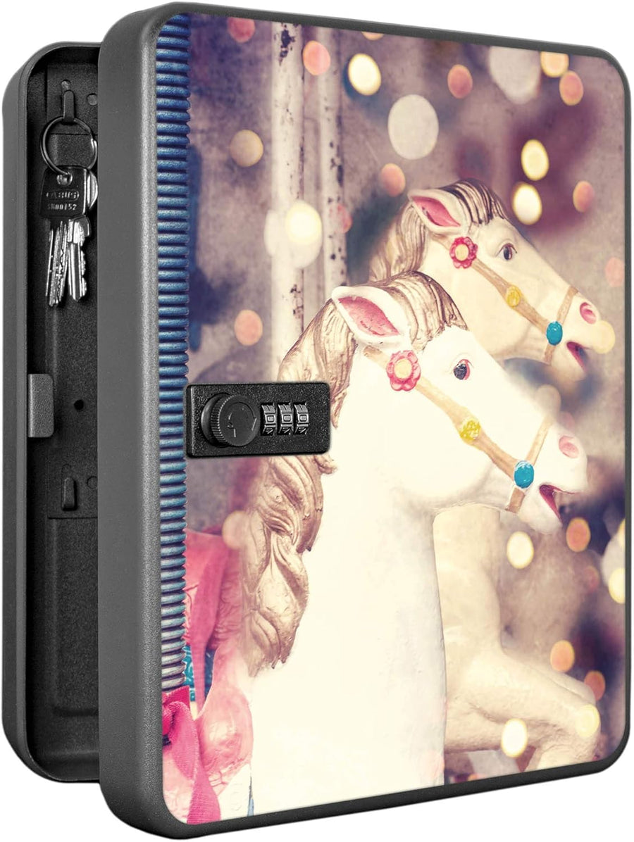 banjado® Burg-Wächter® abschliessbarer Schlüsselkasten mit Motiv Kinderkarussell für 20 Schlüssel -