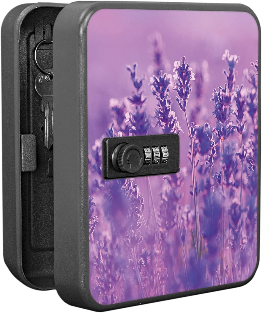 banjado® Burg-Wächter® abschliessbarer Schlüsselkasten mit Motiv Lavendelmeer für 20 Schlüssel - Sch