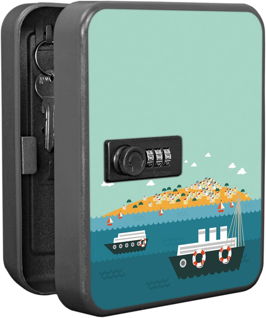banjado® Burg-Wächter® abschliessbarer Schlüsselkasten mit Motiv Land in Sicht für 20 Schlüssel - Sc