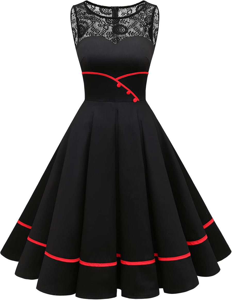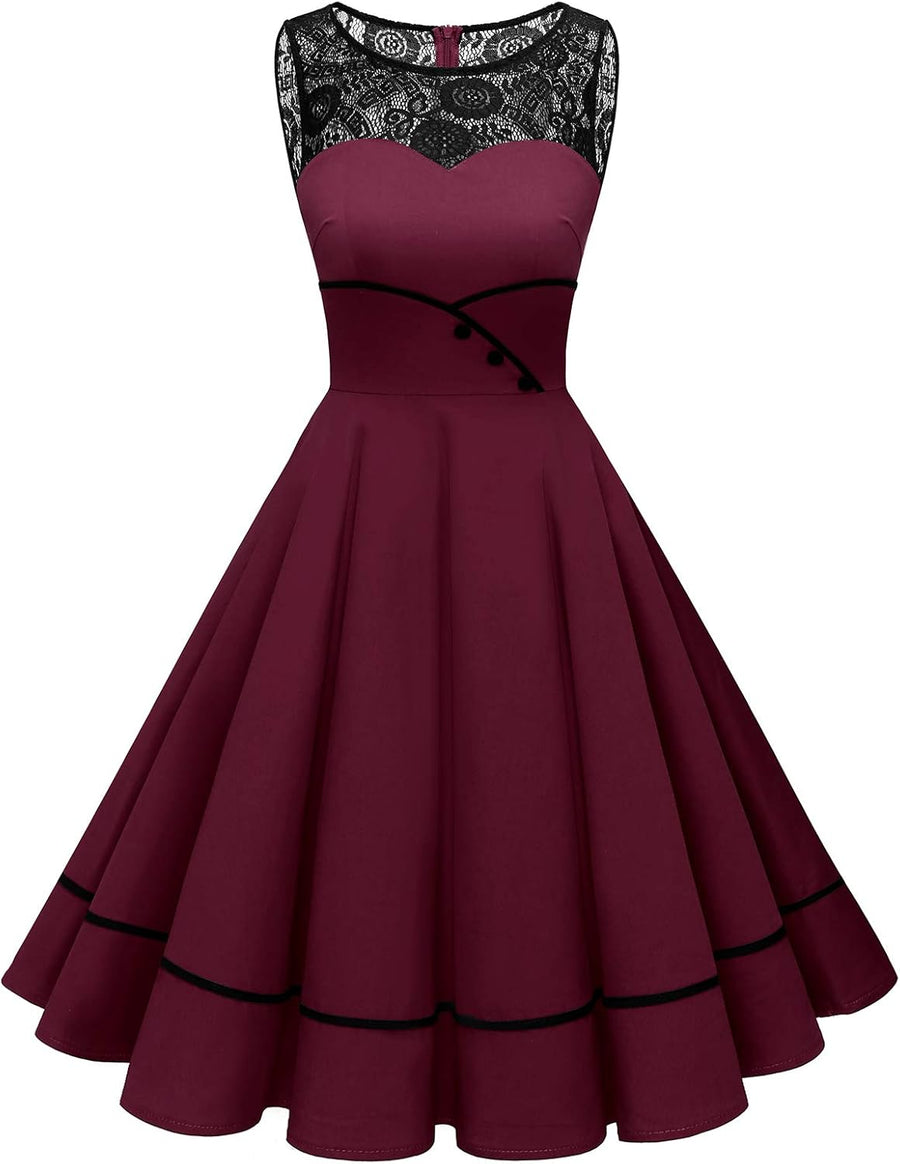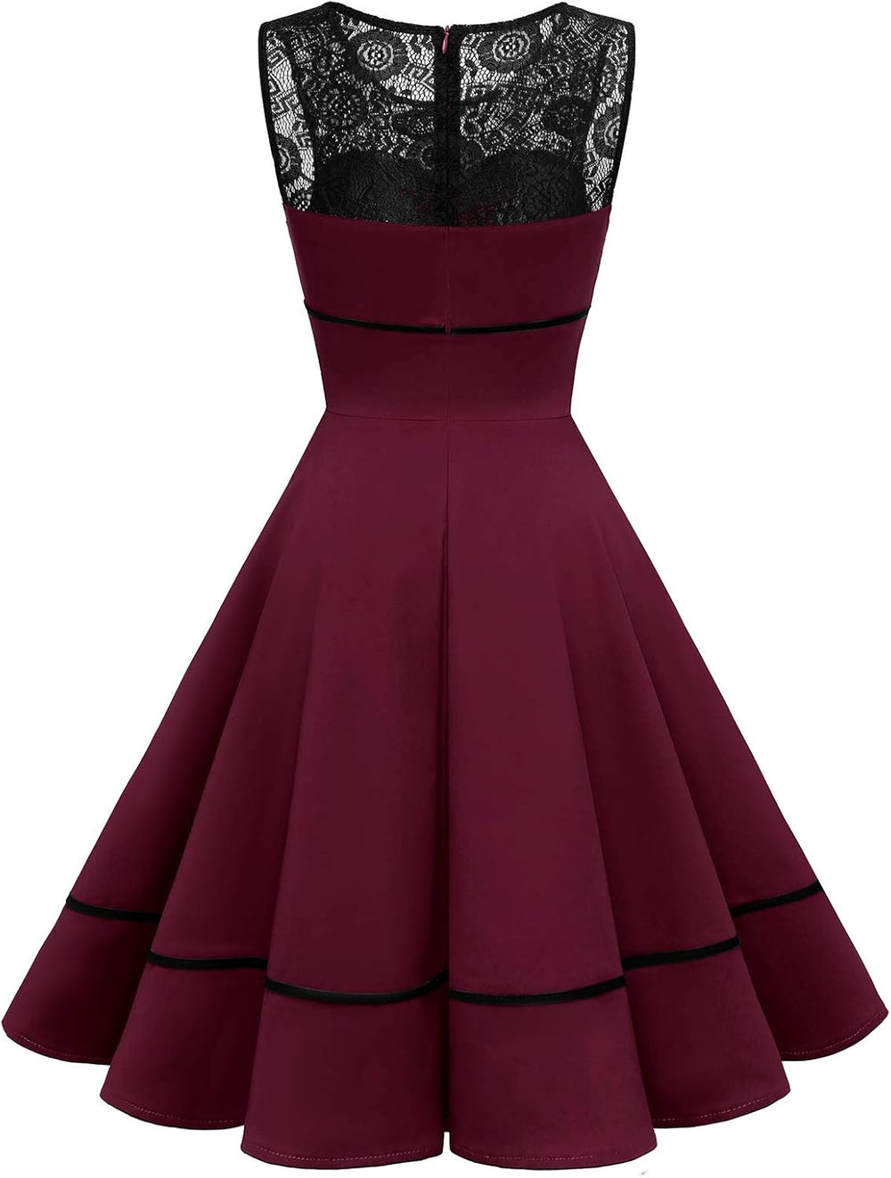 Bbonlinedress Damen Cocktailkleid Rockabilly Spitzenkleid 50er Retro Vintage Faltenrock Elegant Ärme