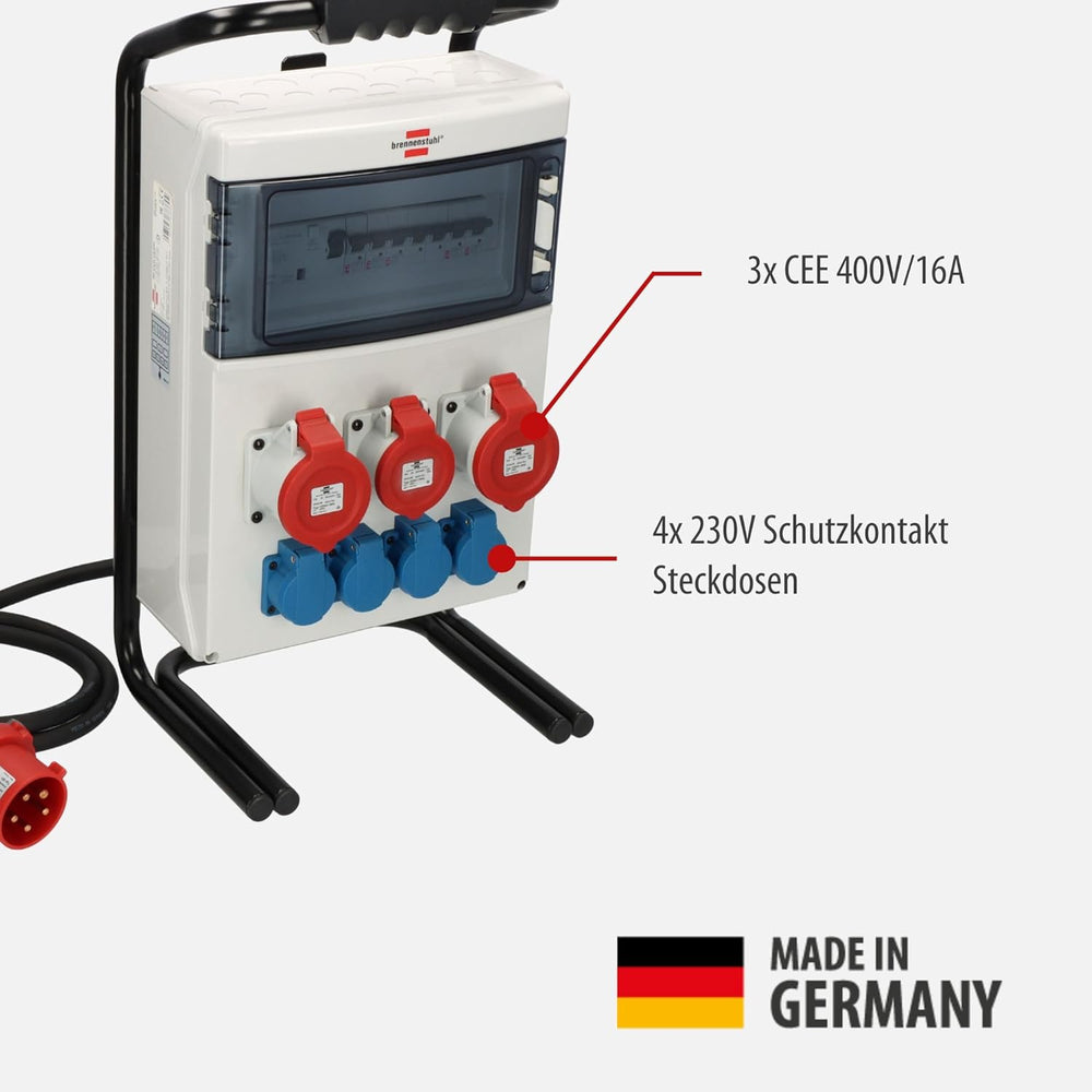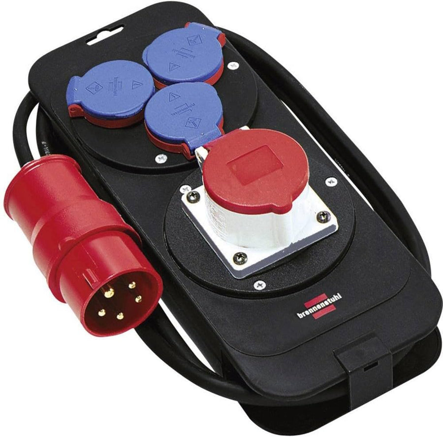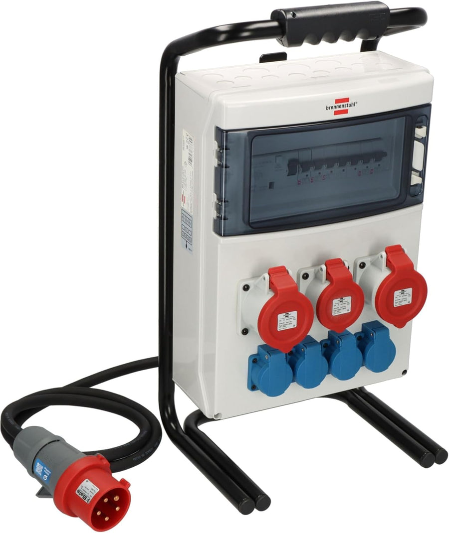 Brennenstuhl Tragbarer Stromverteiler/Baustromverteiler (1x32A + 2x16A CEE-Steckdosen, 2m Kabel, für