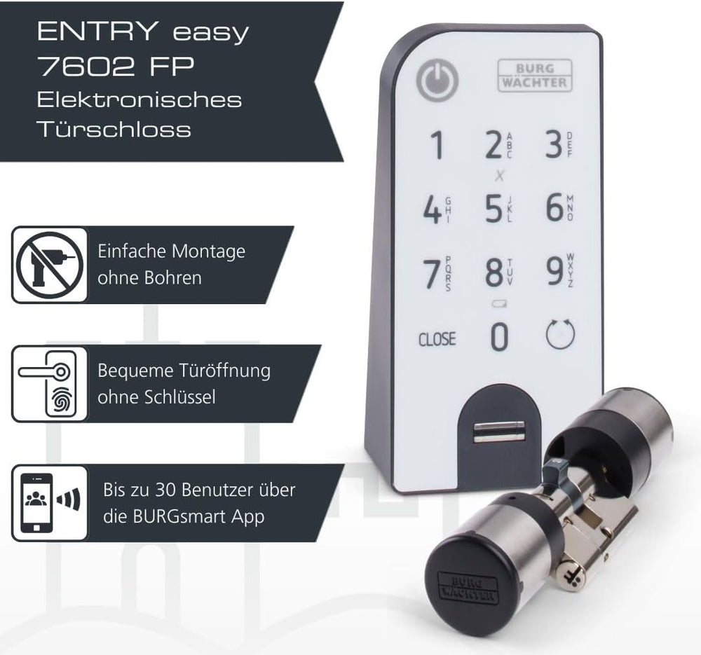 BURG-WÄCHTER Elektronisches Türschloss, Zylinder und Keypad, Öffnung mit App, Fingerprint, Pincode o