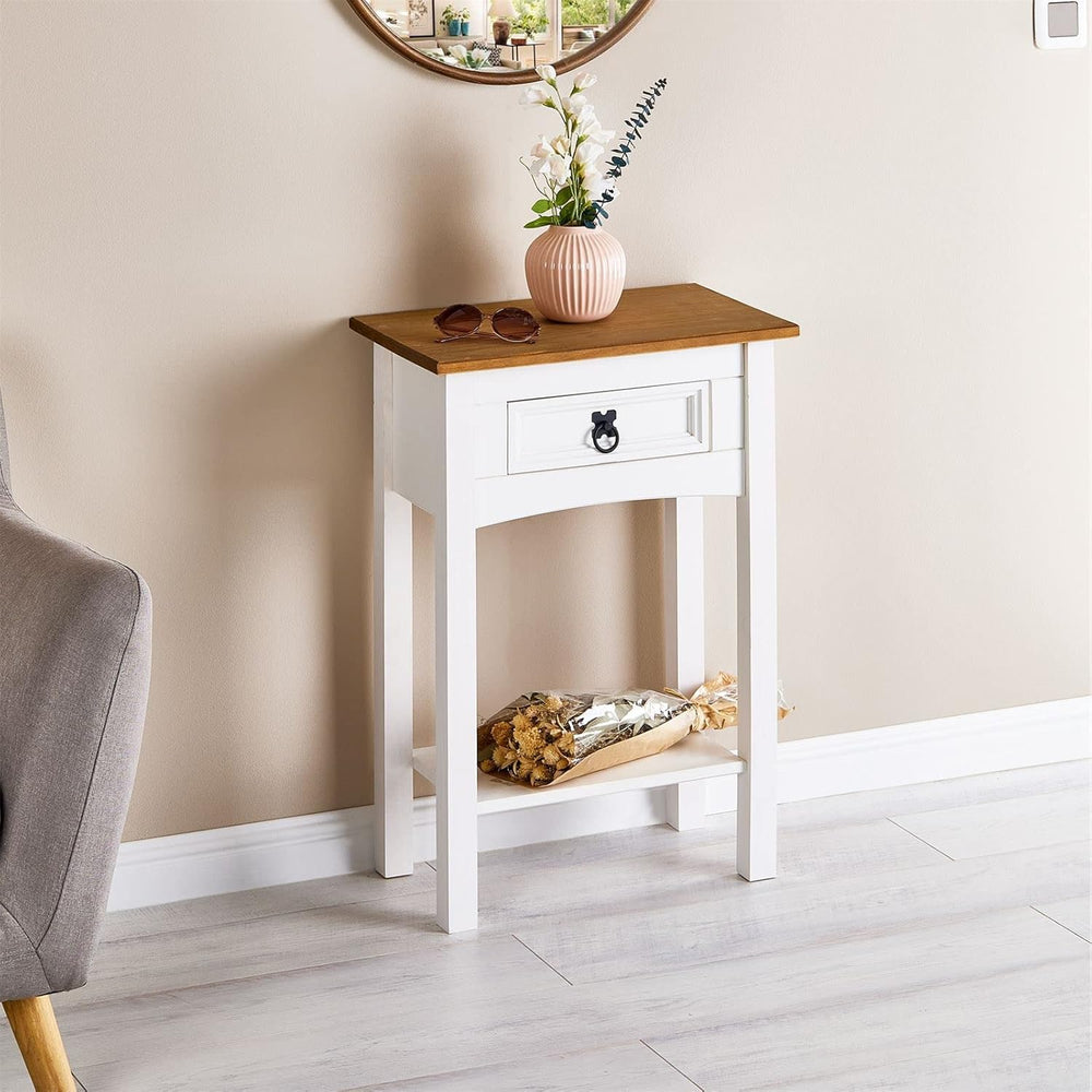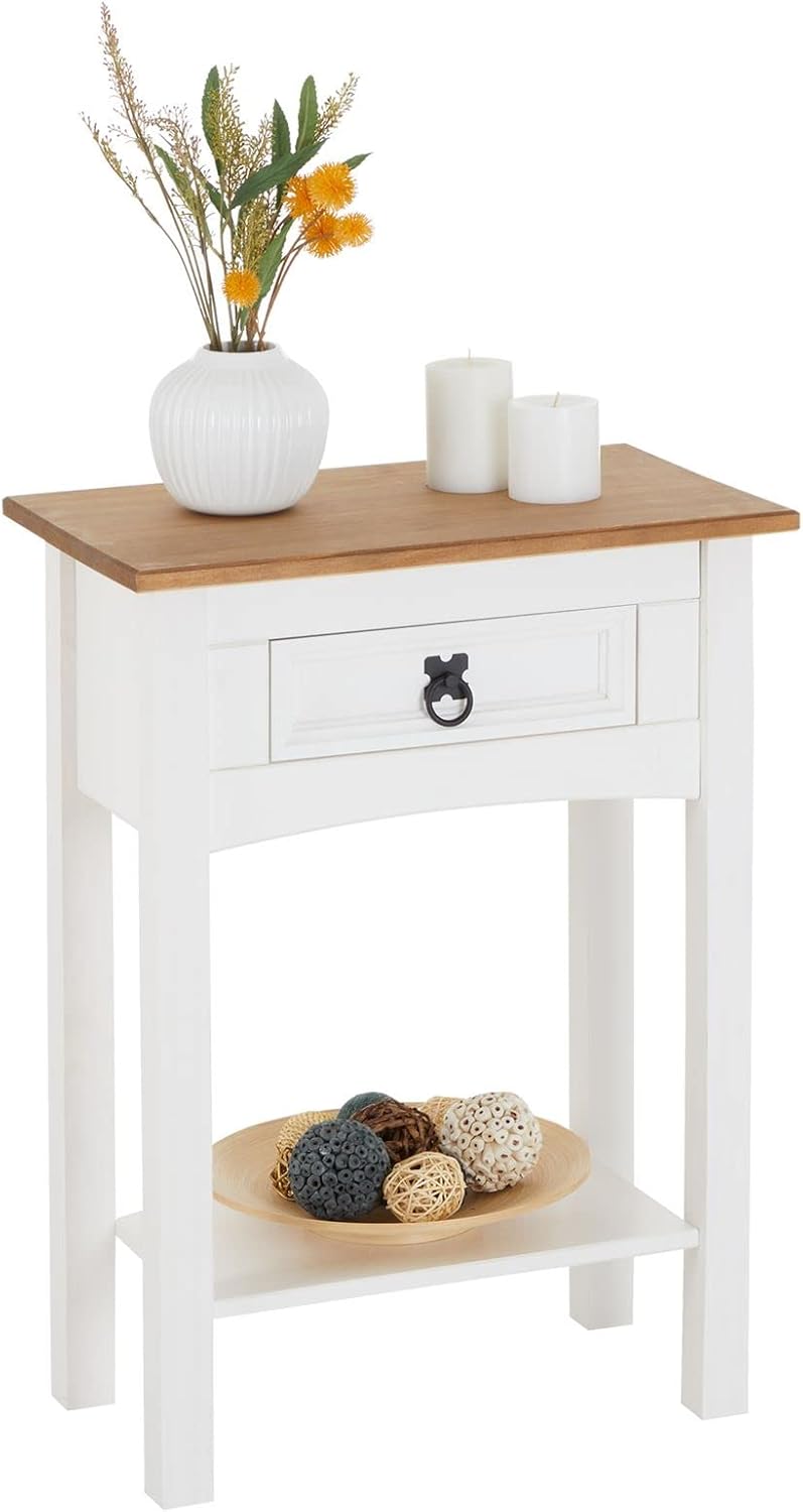 Konsolentisch Campo im Mexiko Stil, Kleiner Beistelltisch aus massiver Kiefer mit 1 Schublade, Anric