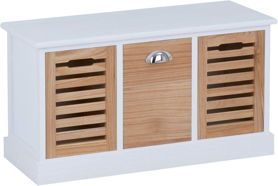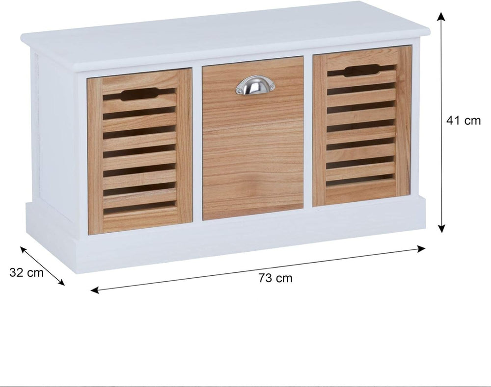 CARO-Möbel Sitzbank TRIENT Garderobenbank Sitztruhe in weiss/Natur mit3 Schubkästen, Vintage Shabby