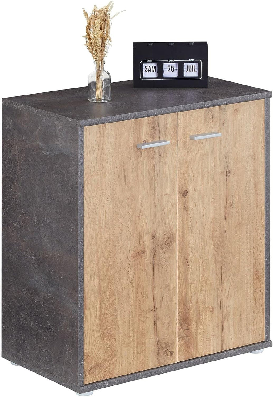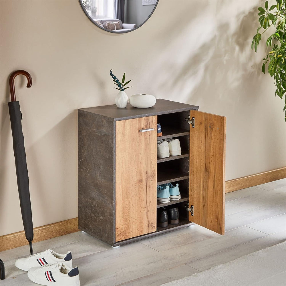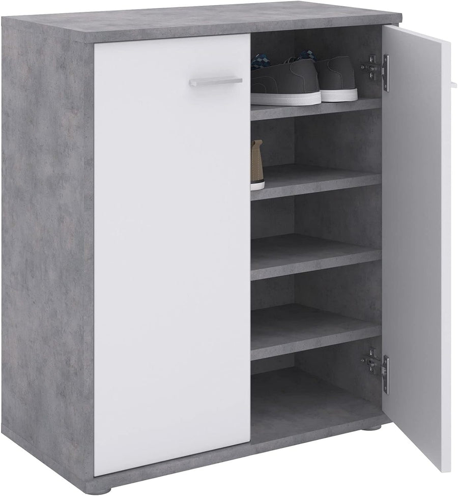 CARO-Möbel Schuhschrank LENNIS mit 4 praktischen Böden Schuhregal Schuhkommode mit 2 Türen, in Beton
