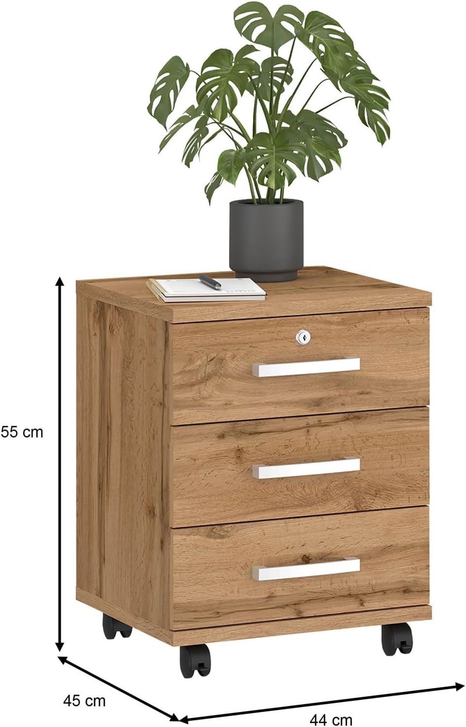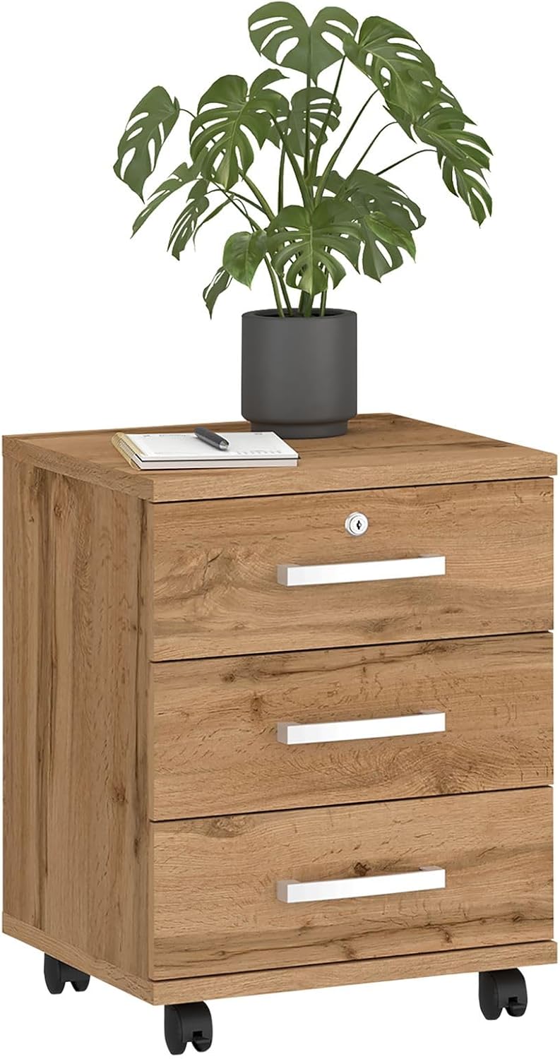 CARO-Möbel Rollcontainer Bürocontainer Büroschrank Vancouver, in Wildeiche, abschliessbar mit 3 Schu