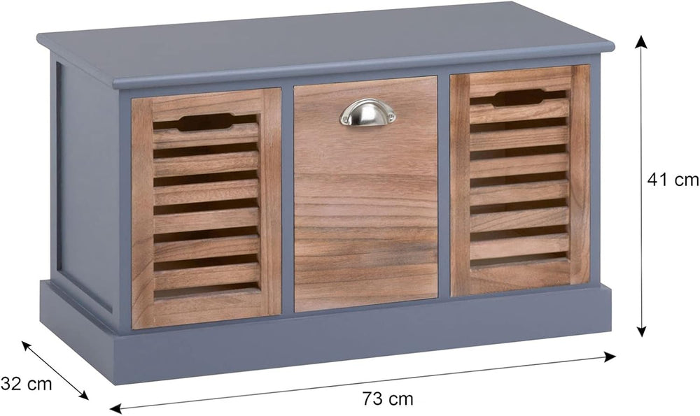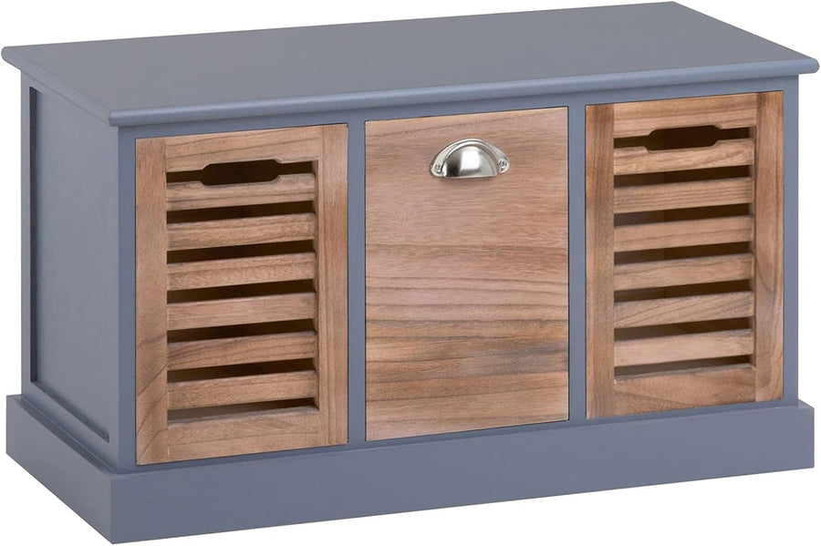 CARO-Möbel Sitzbank TRIENT im Vintage Look grau/Natur Garderobenbank Sitztruhe mit 3 Schubkästen, Sh