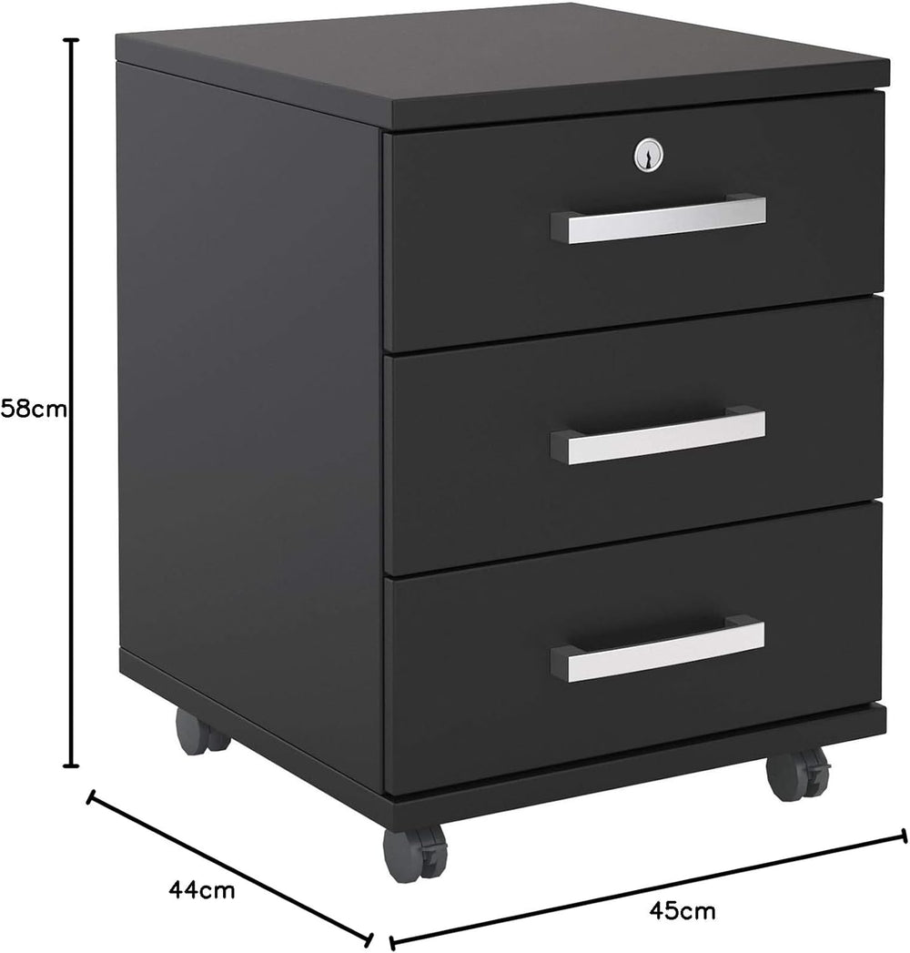 CARO-Möbel Rollcontainer Bürocontainer Büroschrank Vancouver, in schwarz, abschliessbar mit 3 Schubl