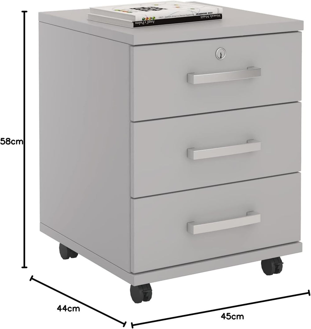 CARO-Möbel Rollcontainer Bürocontainer Büroschrank Vancouver, in lichtgrau, abschliessbar mit 3 Schu