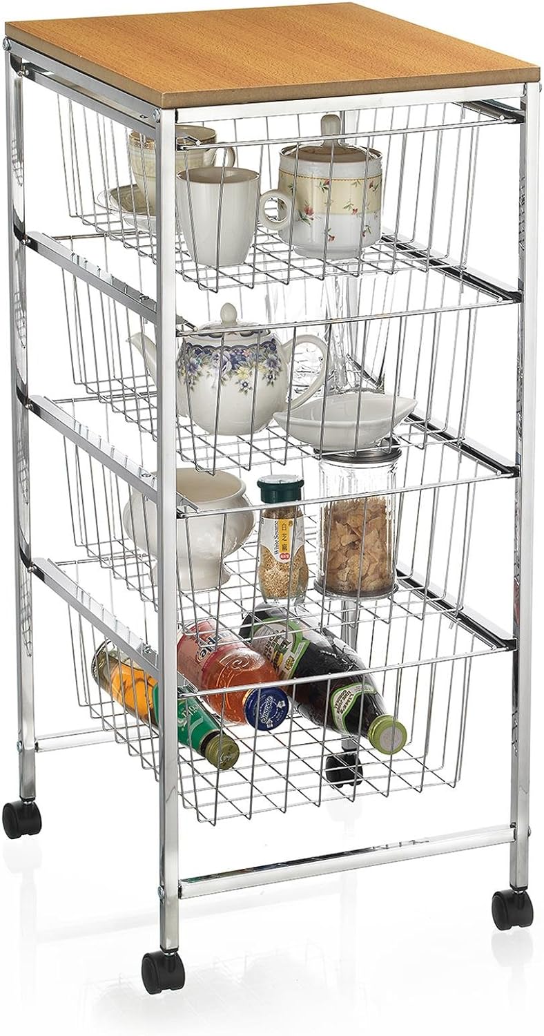 CARO-Möbel Servierwagen Ronja Küchenwagen Küchentrolley Beistellwagen verchromt auf Rollen, 4 Drahtk
