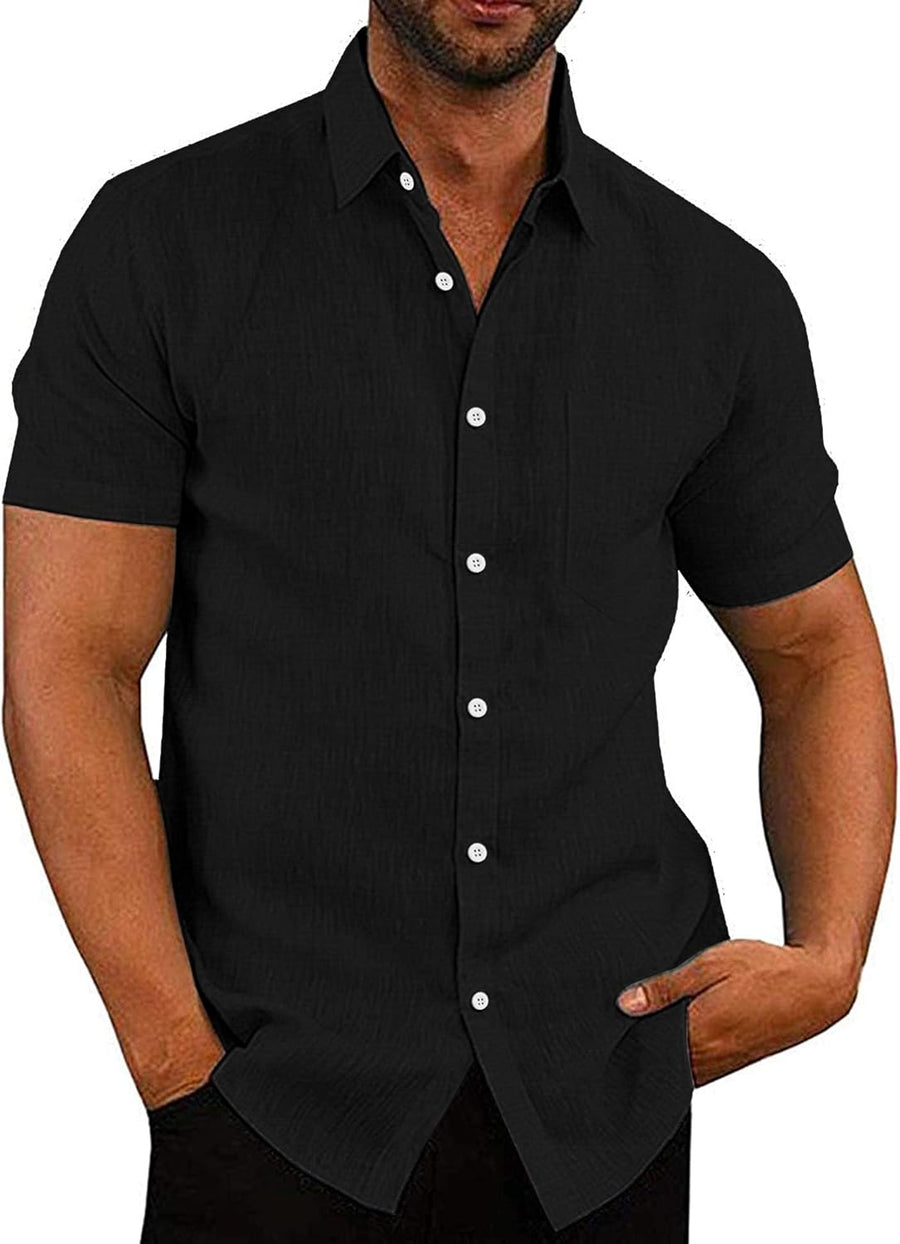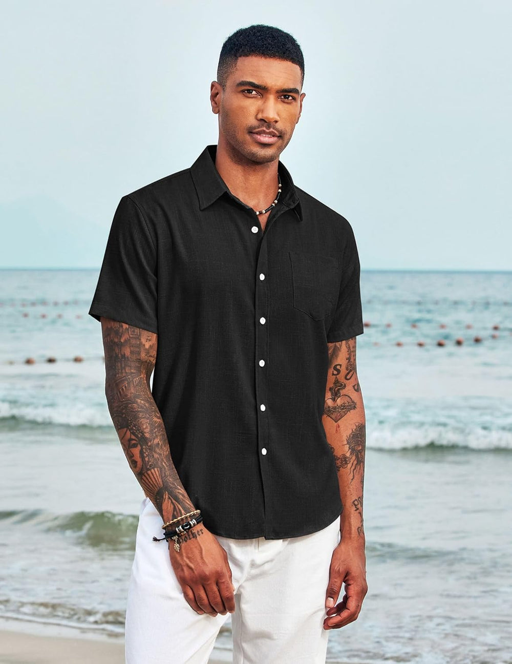 COOFANDY Herren Hemd Kurzarm Leinenhemd Freizeithemd Mit Brusttasche Sommer Kurzarmhemd Businesshemd