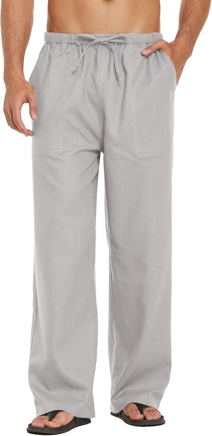 COOFANDY Herren Hose Lange Leinenhose Leicht Sommerhose Strandhose Elastische Taille Yoga Hosen Männ
