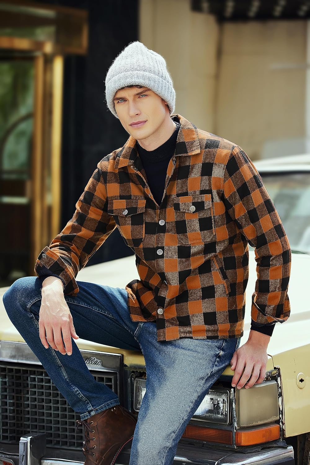 COOFANDY Herren Holzfäller Jacke Flanellhemd Gefüttert Kariert Winterjacke Langarm Winter Warm Holzf