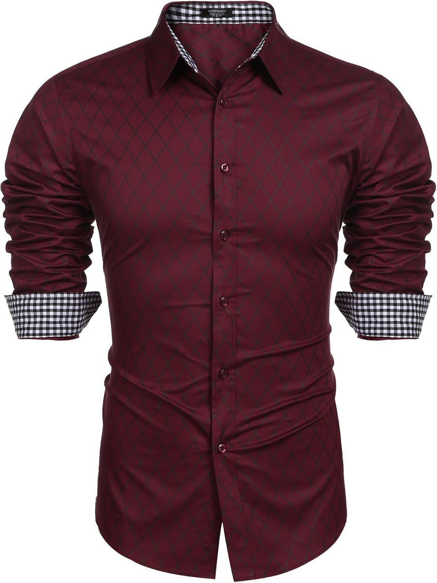 COOFANDY Herren Hemd Langarm Freizeithemd Kariertes Hemd Business Hemd Kontrast Hemd mit Karomuster