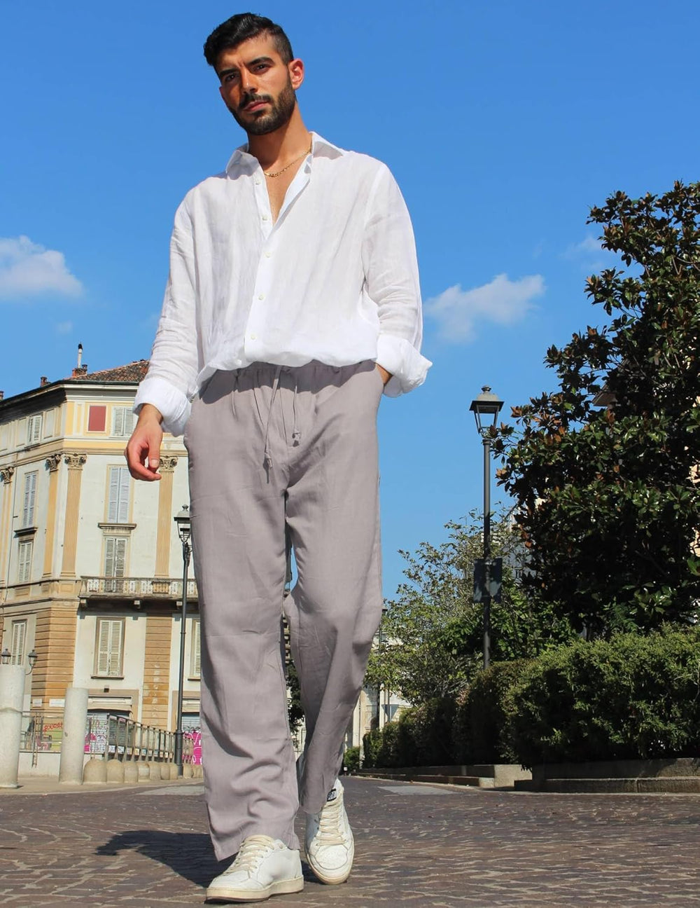 COOFANDY Herren Hose Lange Leinenhose Leicht Sommerhose Strandhose Elastische Taille Hosen Männer Fr