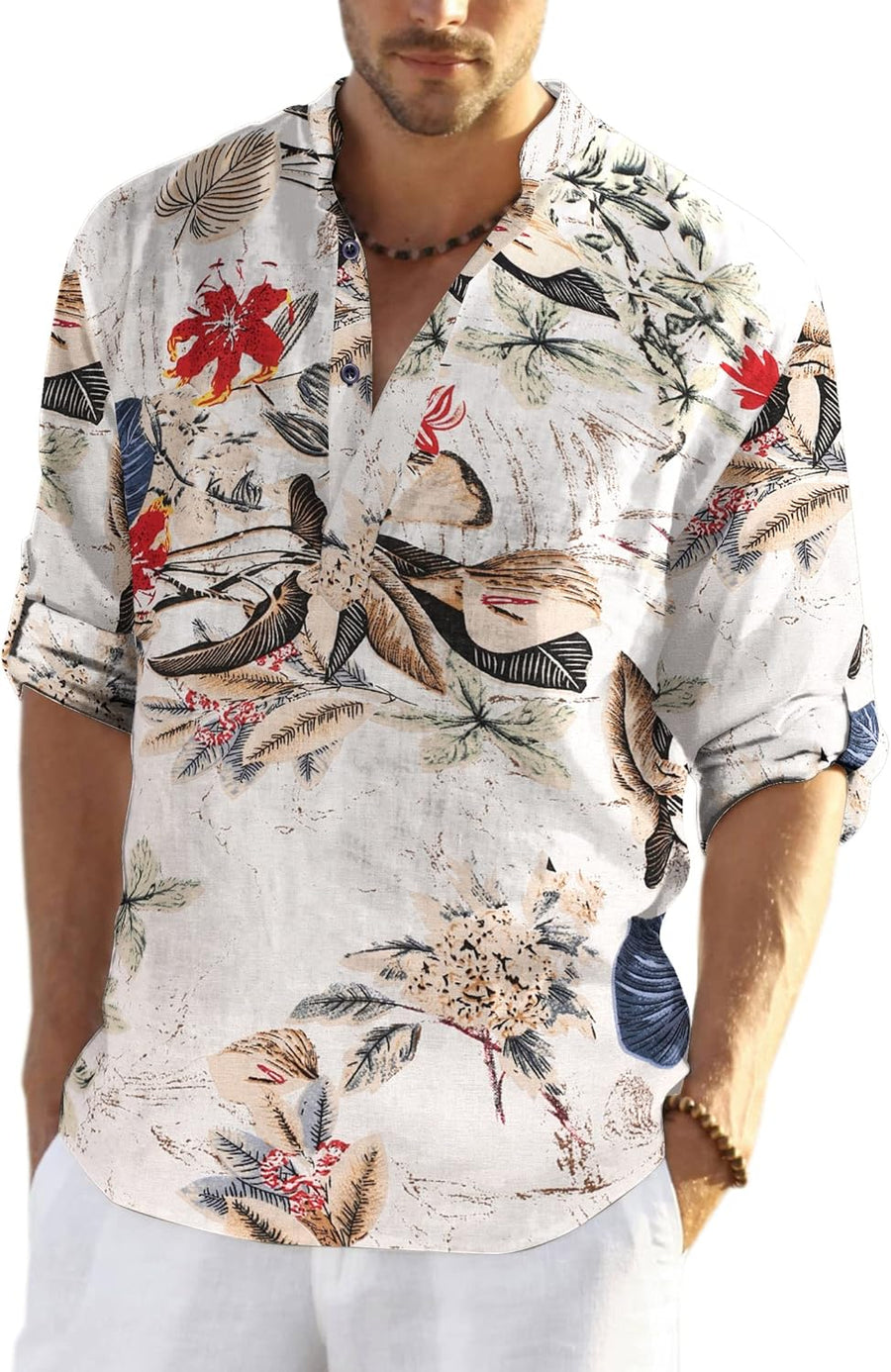 COOFANDY Herren Hemd Langarm Henley Shirt Leinenhemd Baumwolle Casual Regular Fit Sommerhemd S Weiss