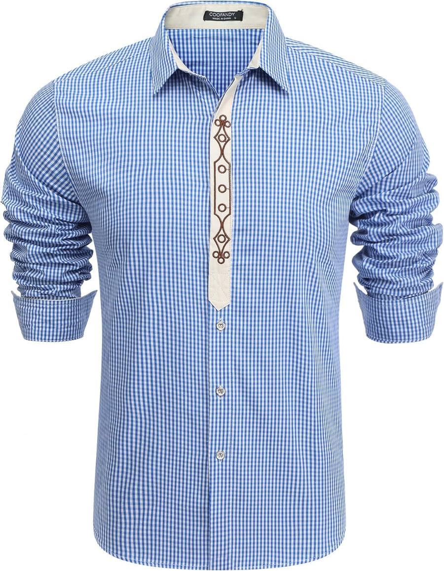 COOFANDY Herren Hemd Langarm Karriert Trachtenhemd Regular Fit Freizeithemd Karohemden Plaid Shirt O