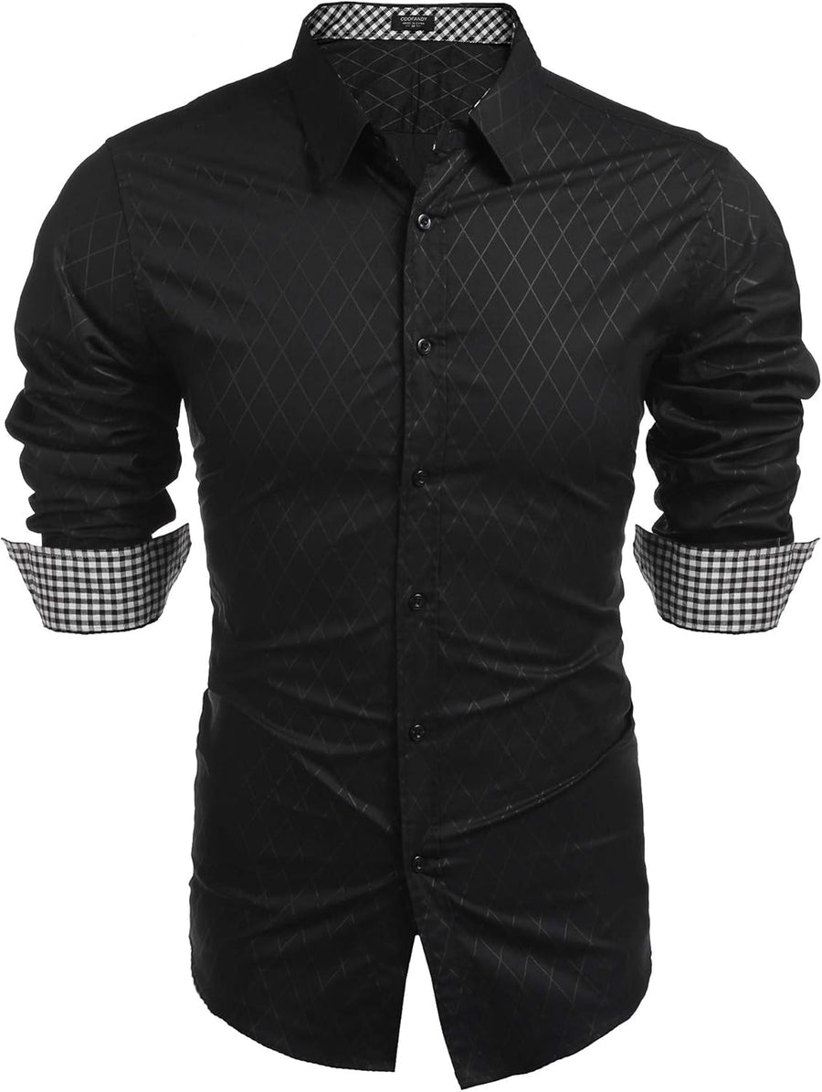 COOFANDY Herren Hemd mit versteckten Knöpfen Regular Fit Langarmhemd Casual Freizeithemd Businesshem