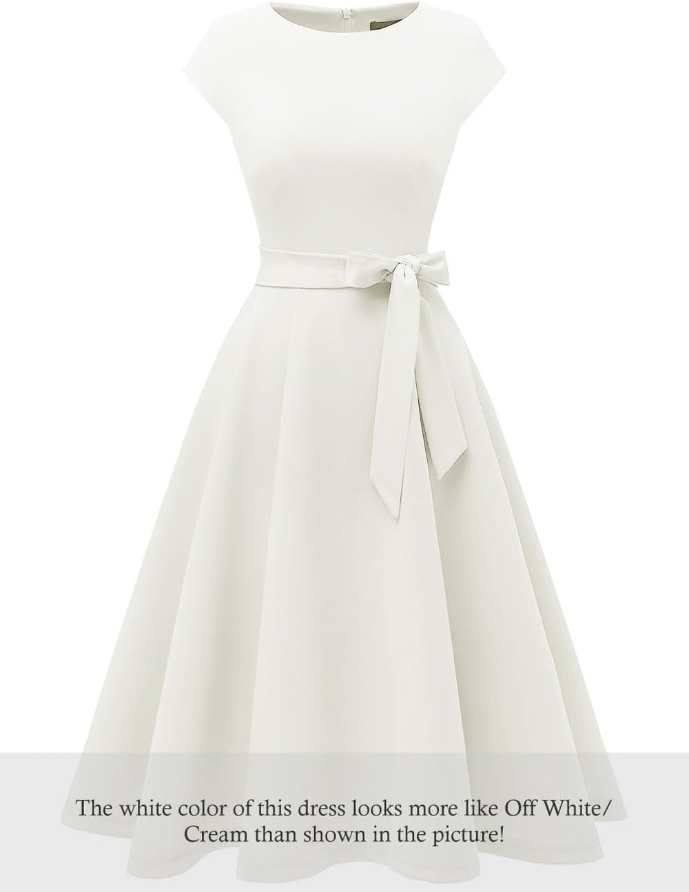 DRESSTELLS Damen Vintage Retro 1950er Cocktaikleid A-Line Swing Festlich Midilang Kleid Weiss S, Wei
