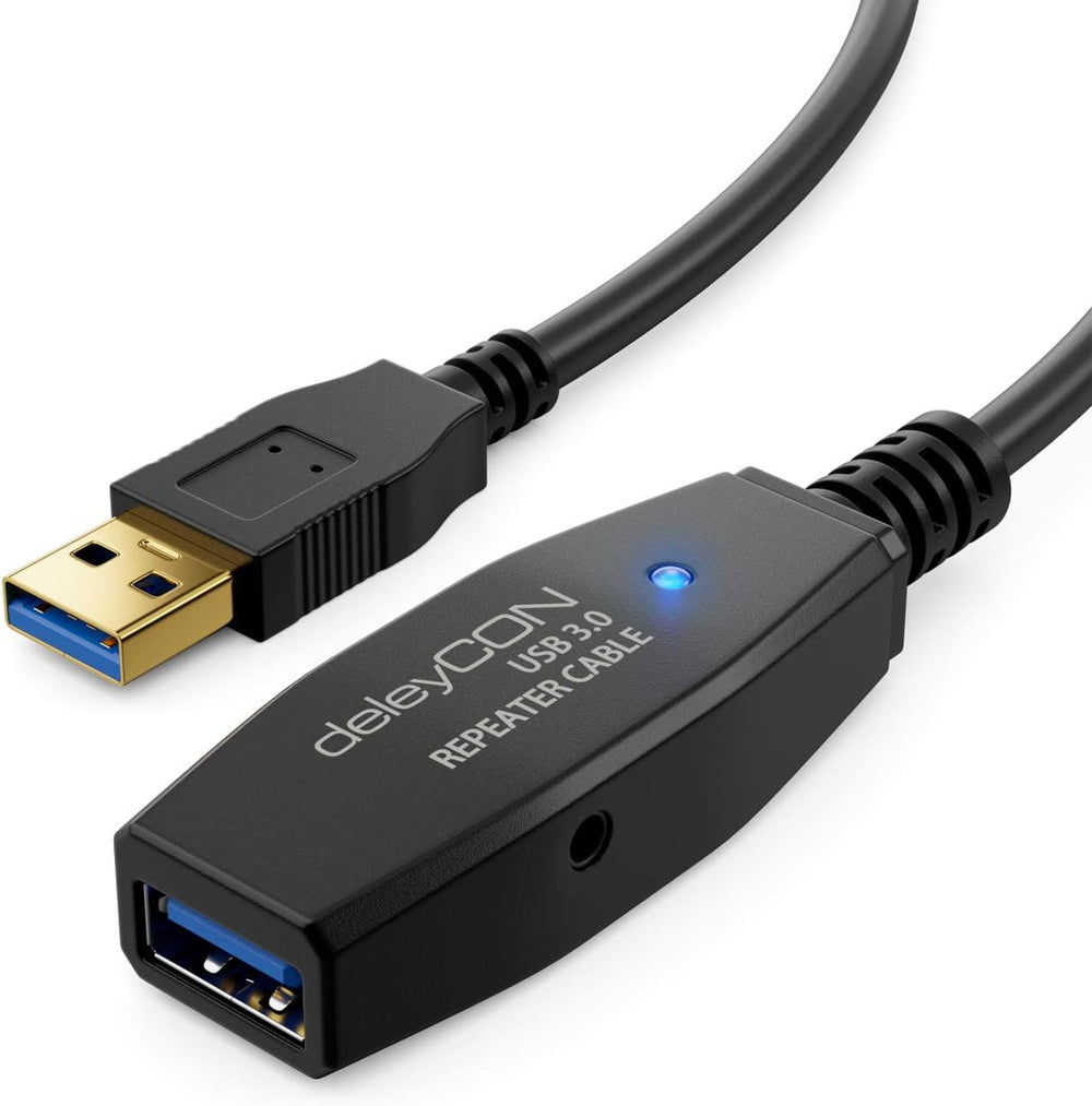 deleyCON 7,5m Aktives USB 3.0 Kabel Aktive Verlängerung mit 1 Signalverstärker USB3.0 Repeaterkabel