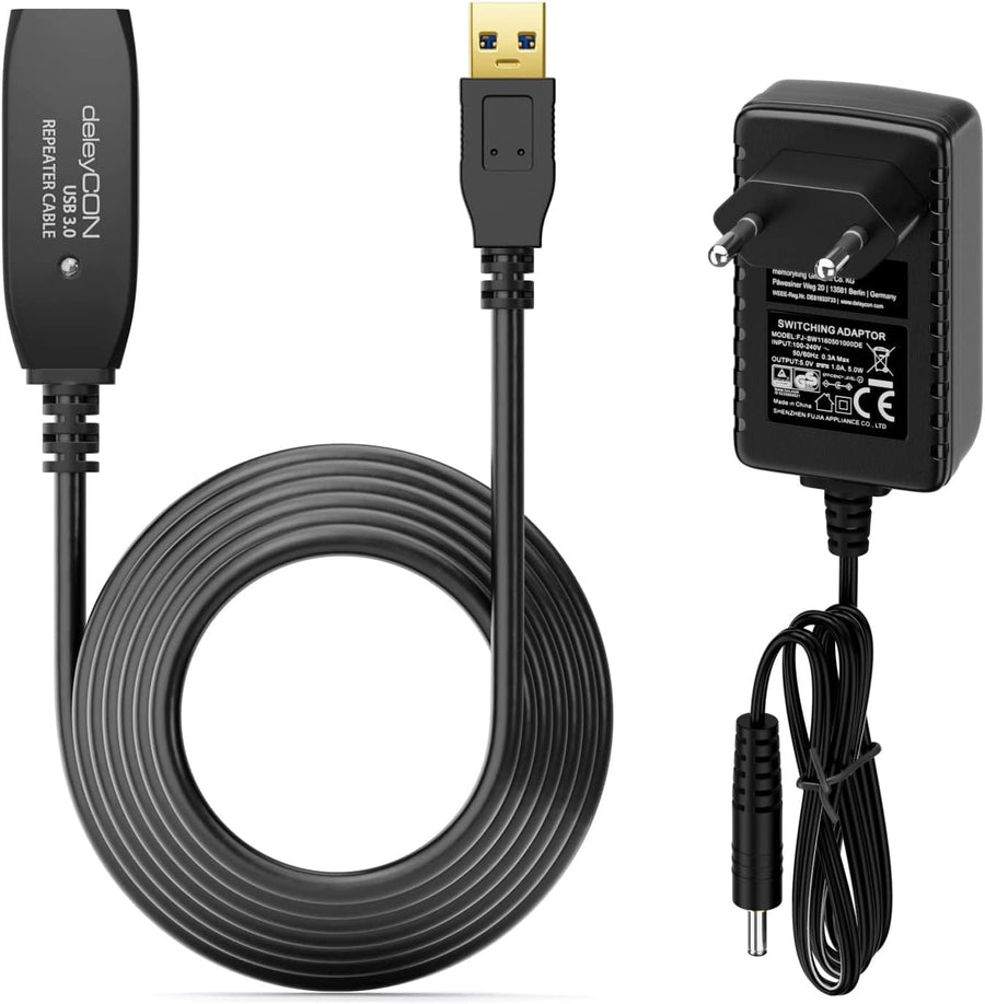 deleyCON 5m Aktives USB 3.0 Kabel Aktive Verlängerung mit 1 Signalverstärker & Netzteil USB3.0 Repea