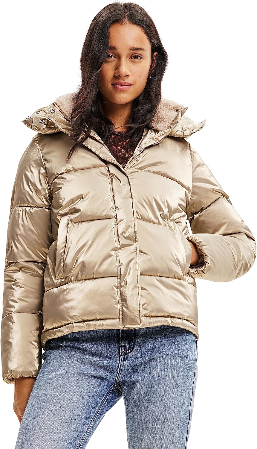 Desigual Damen estocolmo Woman Woven Padded Short Overcoat XS Gelb, XS Gelb