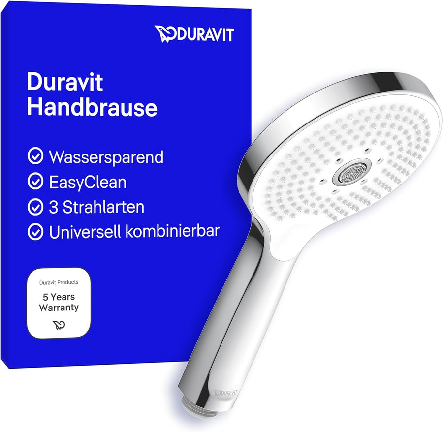 Duravit Universal Duschkopf, Duschbrause mit 3 Strahlarten (Rain, Pulse, Mono), Handbrause rund (Ø 1