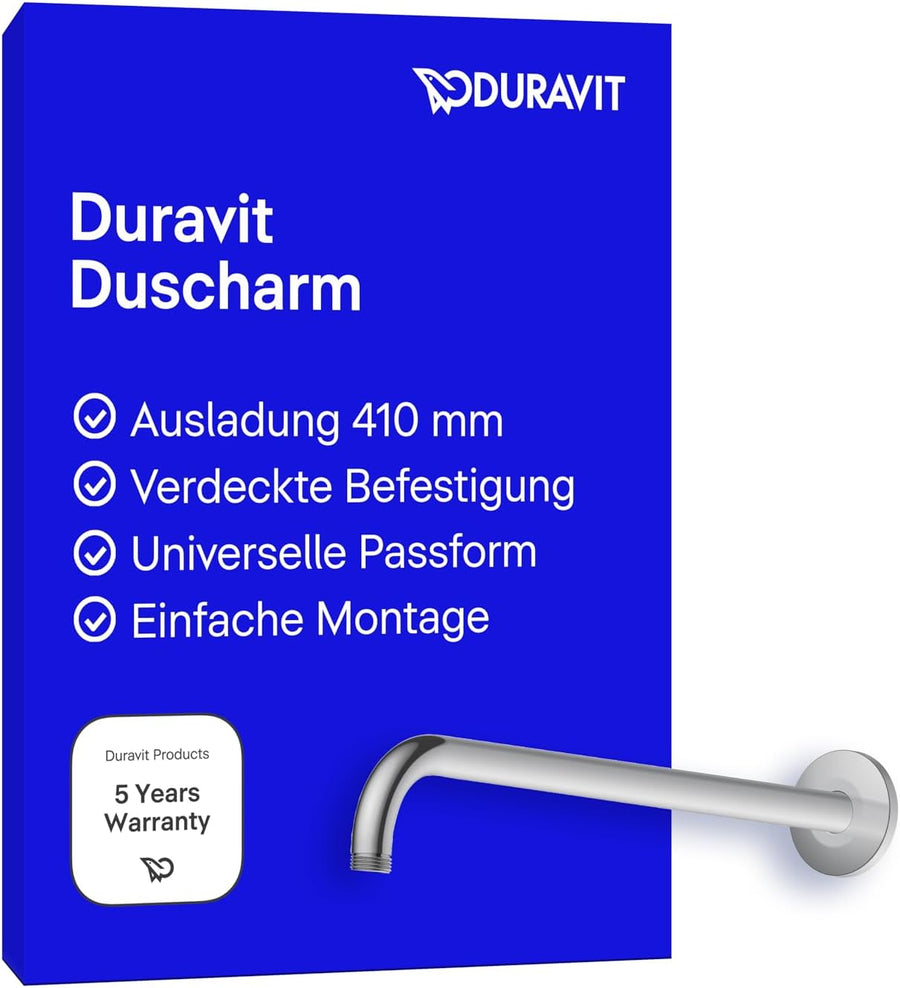 Duravit Universal Duscharm, Duscharmatur Wandbefestigung, Brausearm 410 mm, Duschbrause rund, Chrom