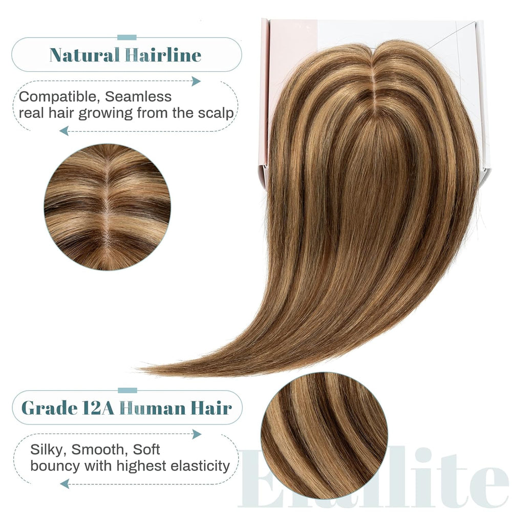 Elailite Echthaar Topper, Clip in Toupet, Frauen Seide Basis Clip in Haarteil, 130% Dichte Remy Silk