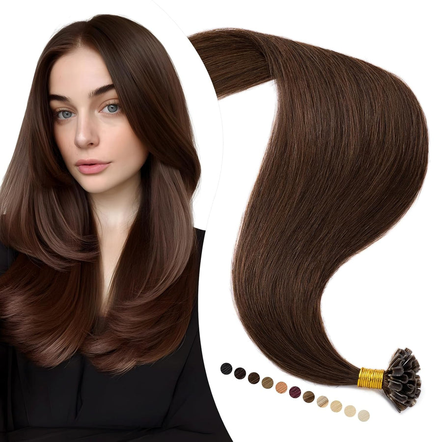 Elailite Extensions Echthaar Bonding 0.5g/s 50cm #4 Mittelbraun U Tip Hair Extensions Keratin 200 St
