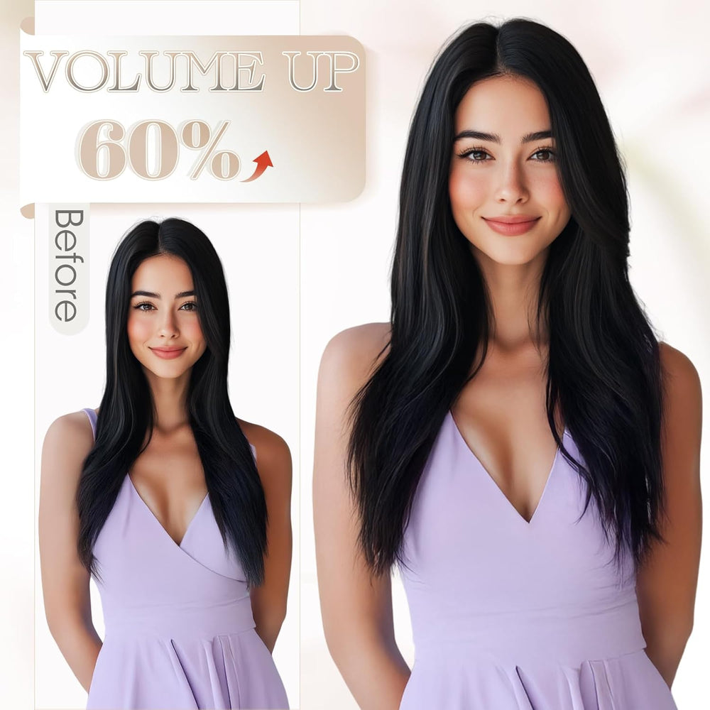Elailite Extensions Echthaar Clip in 8 Tressen Glatt #1B Naturschwarz Haarverlängerung Real Human Ha