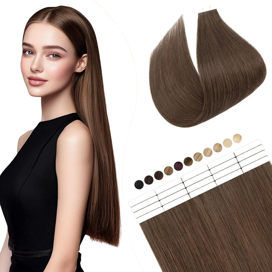 Elailite Echthaar Extensions Tape in 20 Stück Kleberband #2A Leberbraun, 40cm Haarverlängerungen Uns