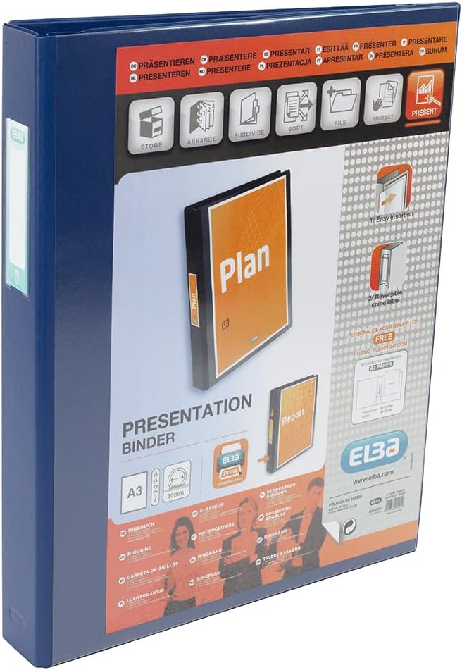 Elba Ringmappe PVC hochkant, 4 D-Ringe, 30 mm Kapazität, A3, 1 Stück, blau 1 blau, 1 blau