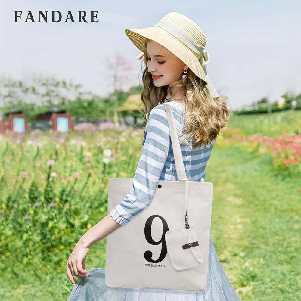 FANDARE Damen Canvas Handtasche Multifunktionale Damen Strandtasche Casual Schultertasche mit Innent