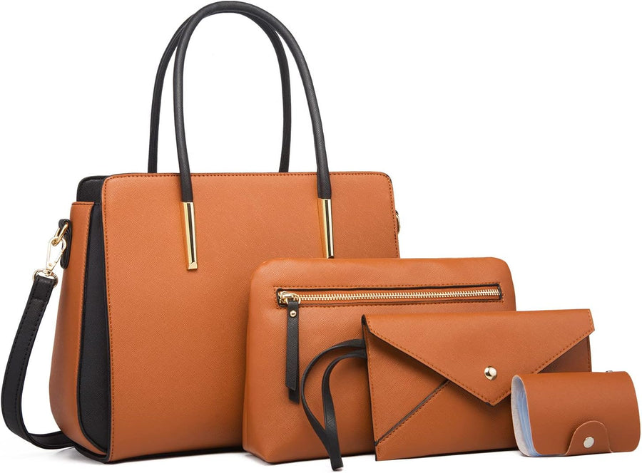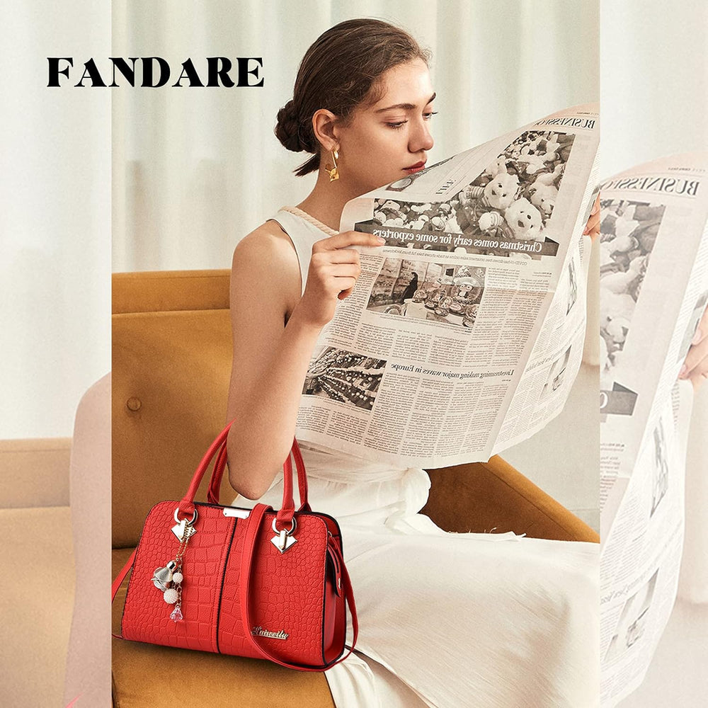 FANDARE Damen Handtasche 4 Stück Set Umhängetasche Frauen Reise Citytasche mit Unterarmtasche Brieft