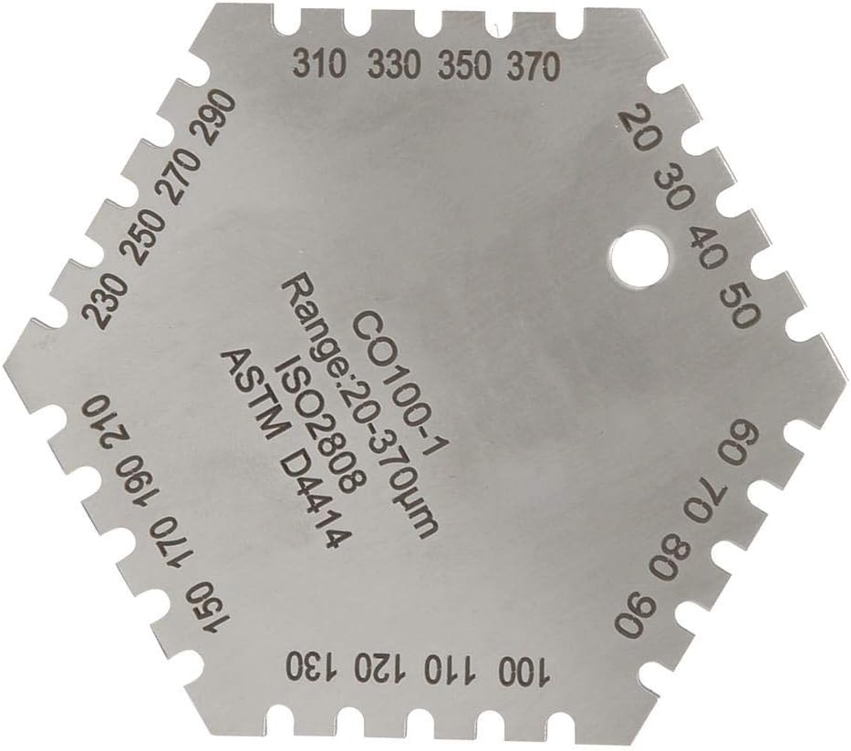 Lackstärkenmessgerät, CO100-1 20-370um Sechskant-Nassfilm-Kammkarten-Edelstahl-Dickenmessgerät mit h
