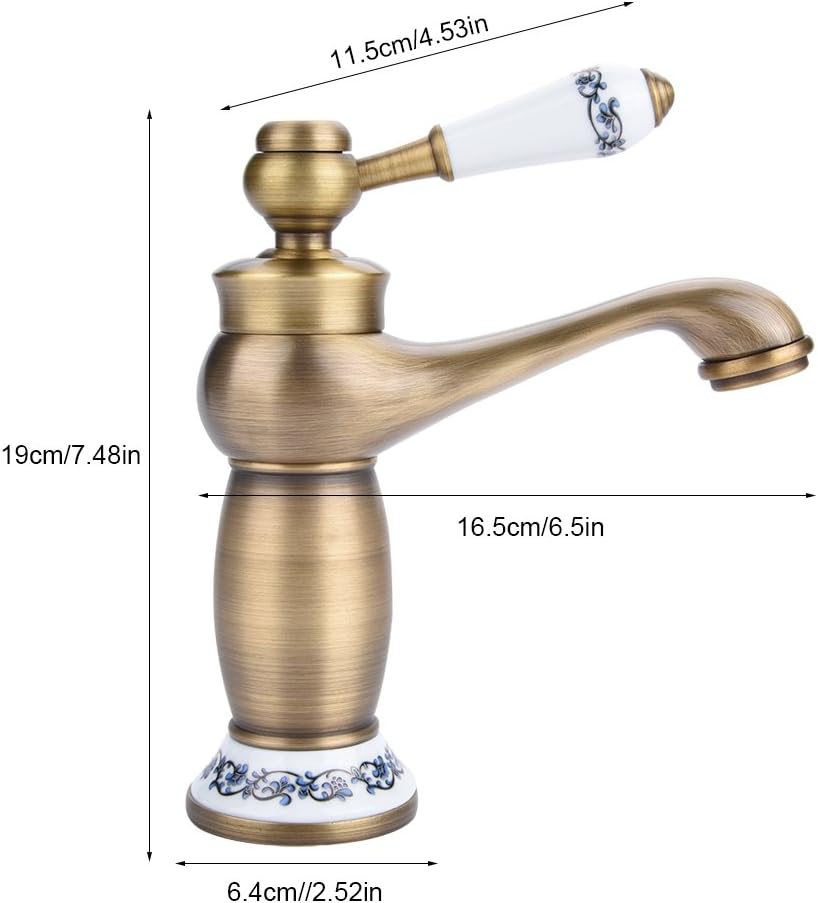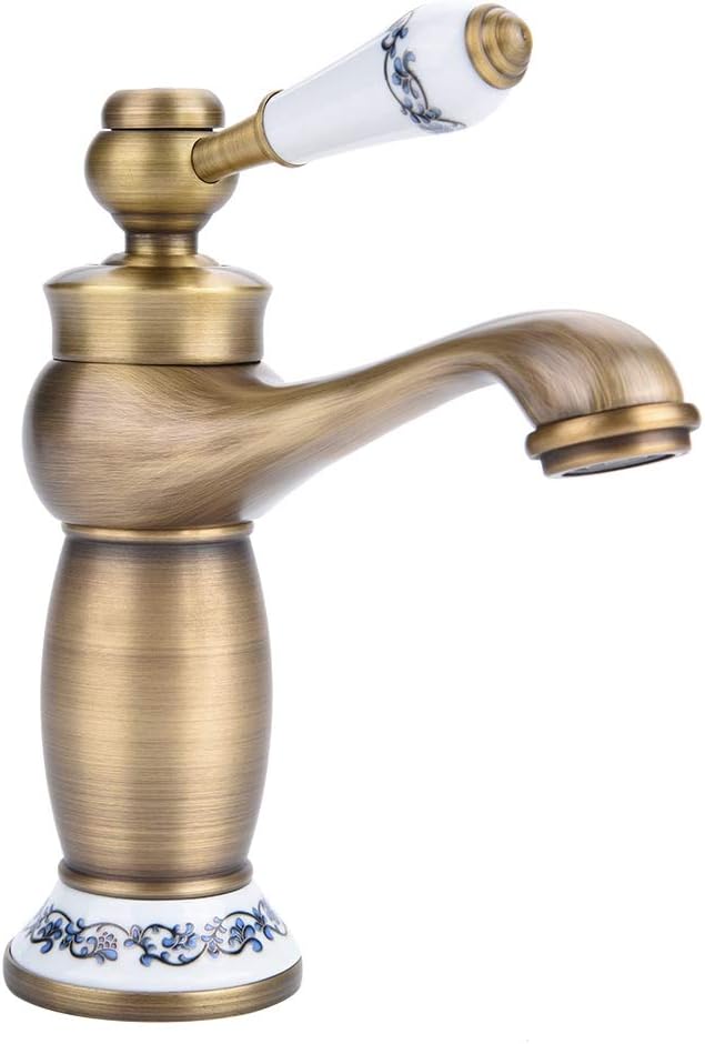 Keramik-Armatur, Antik-Messing, Waschbecken, Wasserhahn Blau und Weiss, aus Porzellan, langer Hals,