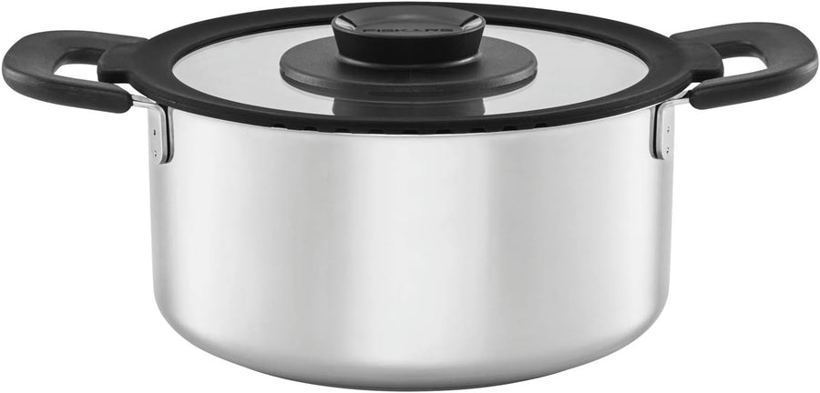 Fiskars Kasserolle, 5 l, Unbeschichtet, Für alle Kochfelder geeignet, Recycelter Edelstahl, All Stee
