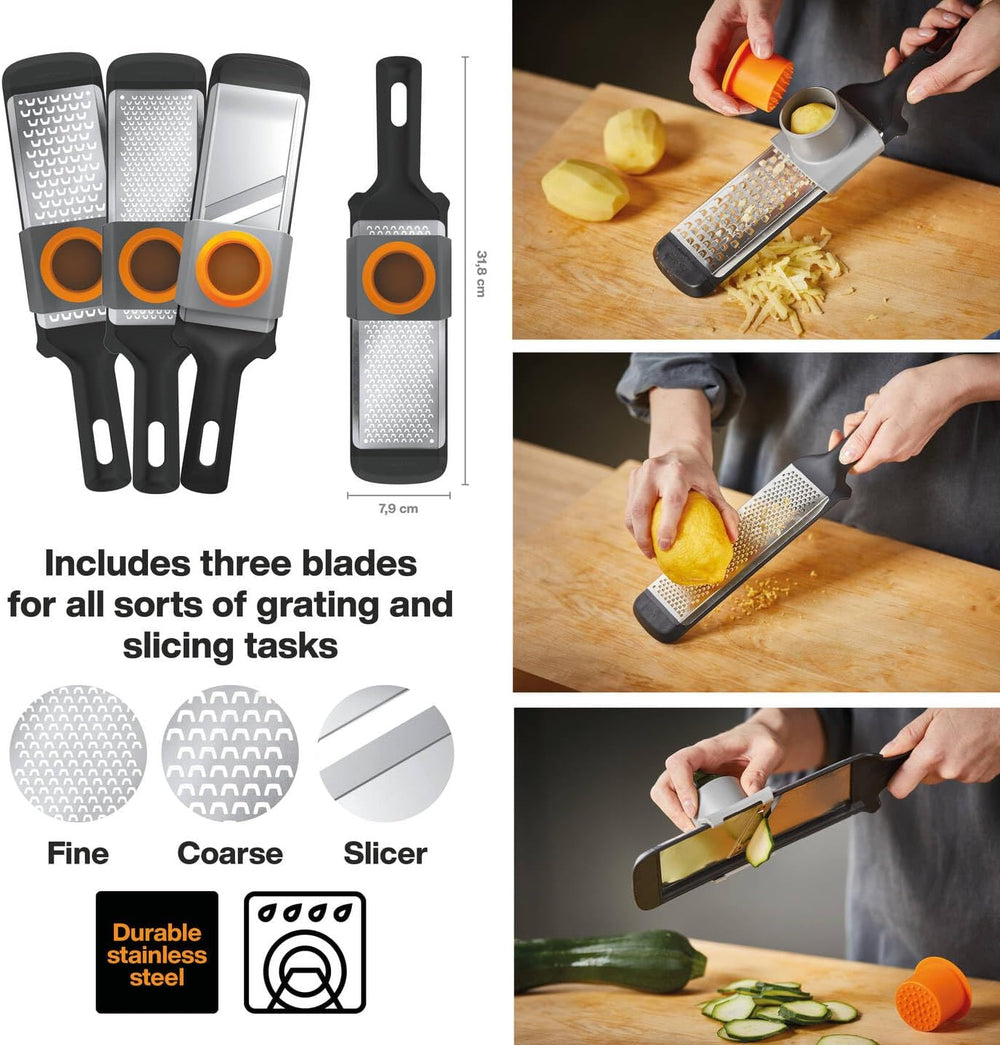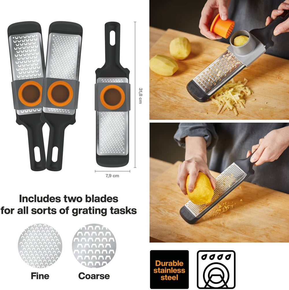 Fiskars Gemüsehobel und -reiben-Set, 3-teilig., Metall/Kunststoff, Functional Form, 1014414 Hobel+Re