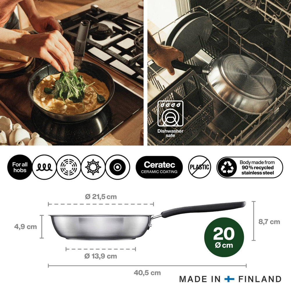 Fiskars Functional Form Bratpfanne, 20 cm, Schwarz/Silber, Bratpfanne 20 cm Keramikbeschichtung