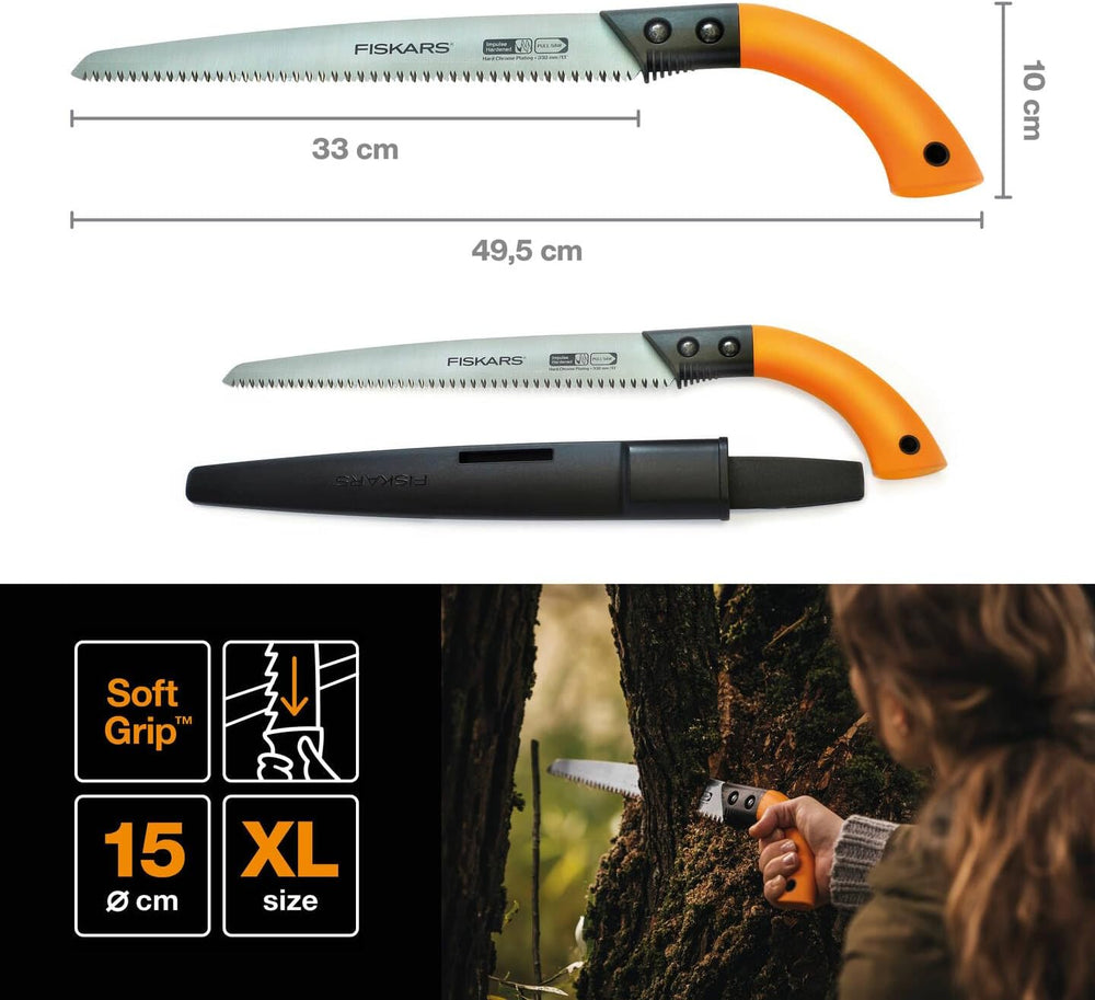 Fiskars Handsäge für frisches Holz bis Ø 15 cm, Mit feststehendem Blatt, Inklusive Kunststoff-Köcher