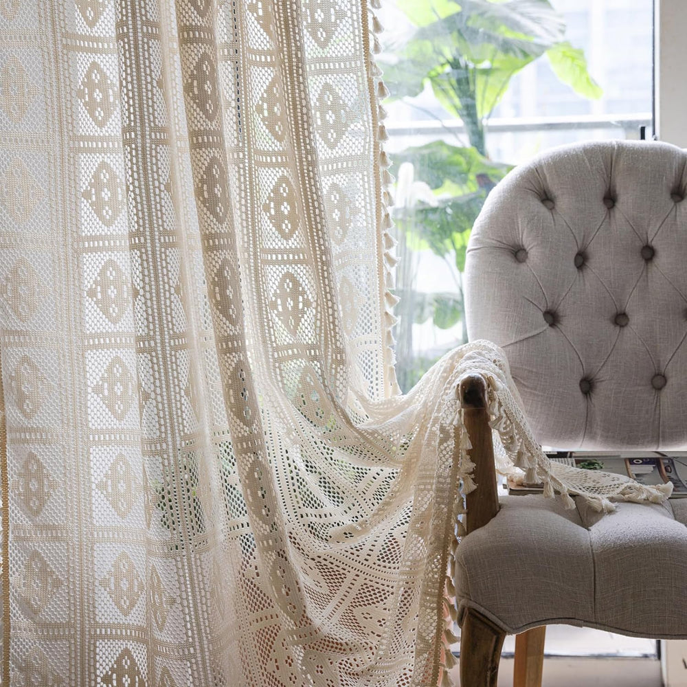 Freyamy Vorhang 2er Set Transluzente Beige,Bestickte Vorhänge mit Stangendurchzug,Stickerei Spitze G