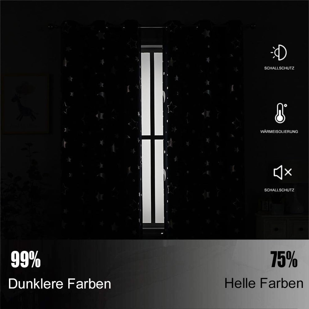 Freyamy Vorhang Blickdicht Dunkelblau Mond Sternenvorhänge 2 Stück,200x100cm (HxB) Niedliche Vorhäng
