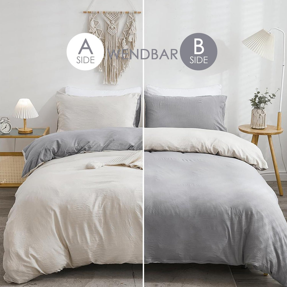 Freyamy Wendbar Bettwäsche 135x200cm 2teilig Beige Grau Unifarben Uni Wendebettwäsche Gewaschene Mic