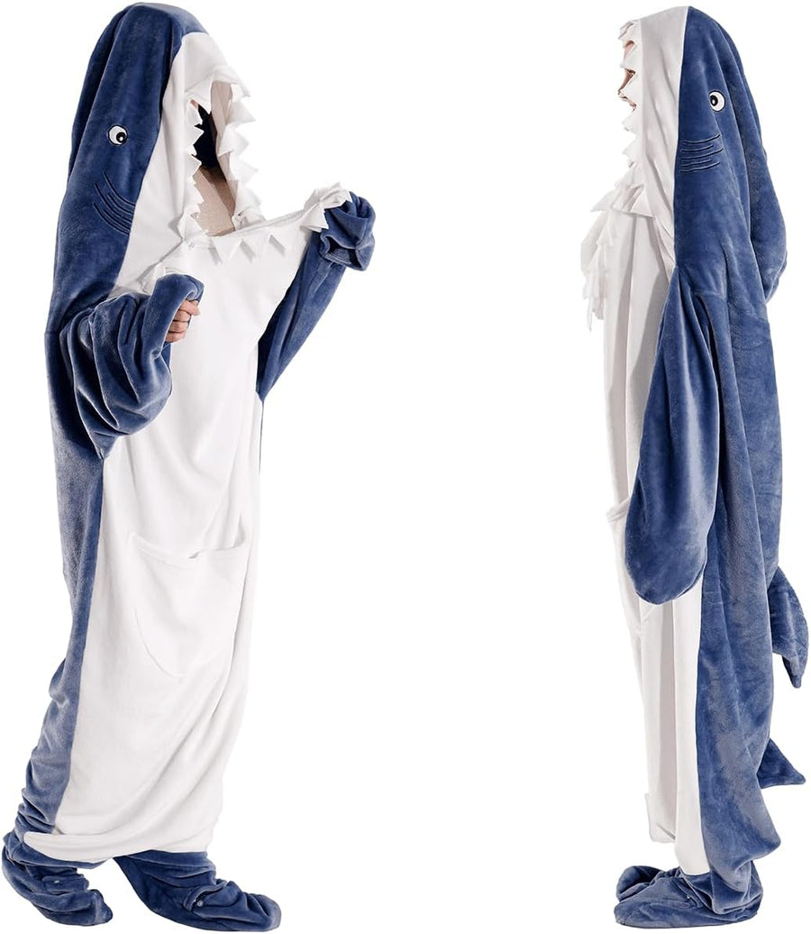 Hai Decke mit Ärmeln,Flanelldecke mit Kapuze für Cosplay-Shows,Superweicher Sofa Kuscheldecke Hai De