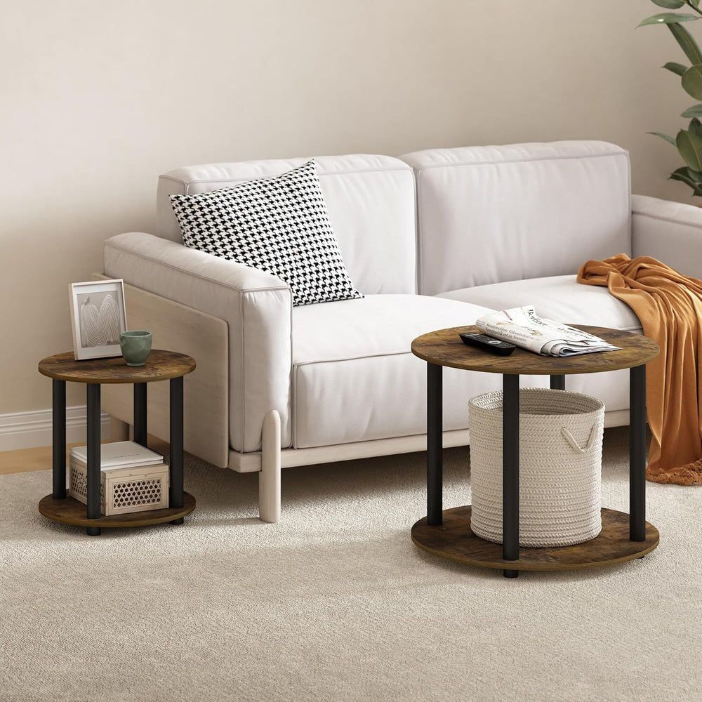 Furinno Simplistic Sofatisch, Couchtisch, Beistelltisch, mit 2 Ebenen, 2-er Set, Americano/Schwarz,
